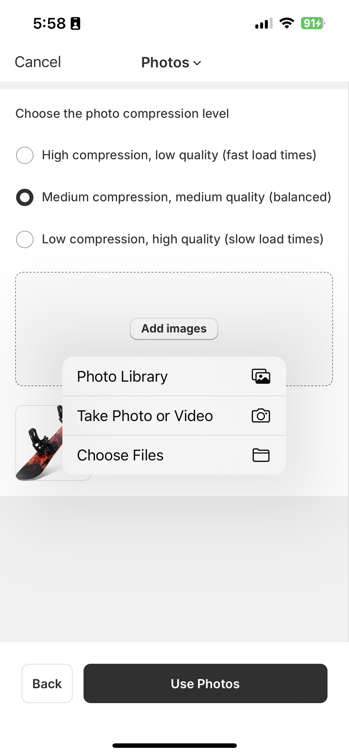 Add auto-optimized photos from your mobile, desktop, or camera